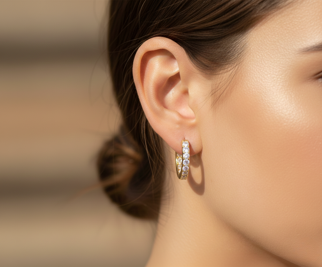 - Maße/Größe: Kompakte Huggie-Passform, die das Ohrläppchen dezent umschließt.