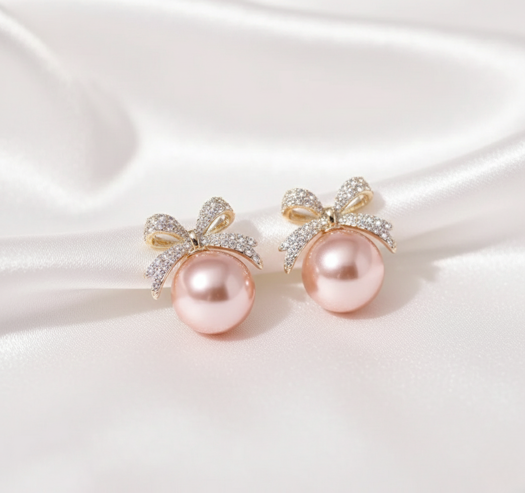 - Design: Filigran ausgearbeitete Schleife im "Coquette-Stil" mit direkt darunter hängender Perle.